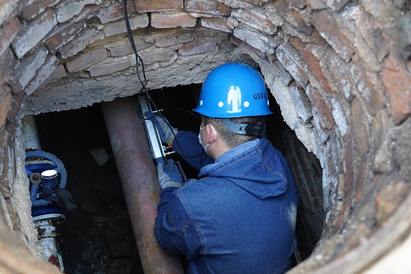 在13號(hào)樓進(jìn)出口閥門附近,檢修人員正在二次管網(wǎng)地溝內(nèi)進(jìn)行水力平衡調(diào)節(jié)工作。橋靠分公司第四運(yùn)營(yíng)所副所長(zhǎng)賈超介紹:"在2020-2021采暖期供暖結(jié)束后,所部便開展冬病夏治、供熱設(shè)施維修工作。特別針對(duì)老舊小區(qū)供熱系統(tǒng)二次網(wǎng)冷態(tài)平衡調(diào)節(jié)制定了一系列方案與措施;運(yùn)營(yíng)所各班組提前對(duì)各小區(qū)熱力站除污器、用戶濾網(wǎng)等進(jìn)行了全面細(xì)致的清洗工作,以確保熱力站、二次網(wǎng)及用戶供熱系統(tǒng)無(wú)堵塞、阻力無(wú)異常。為新采暖期供熱及確保各小區(qū)水力調(diào)節(jié)工作做好充分的準(zhǔn)備。"